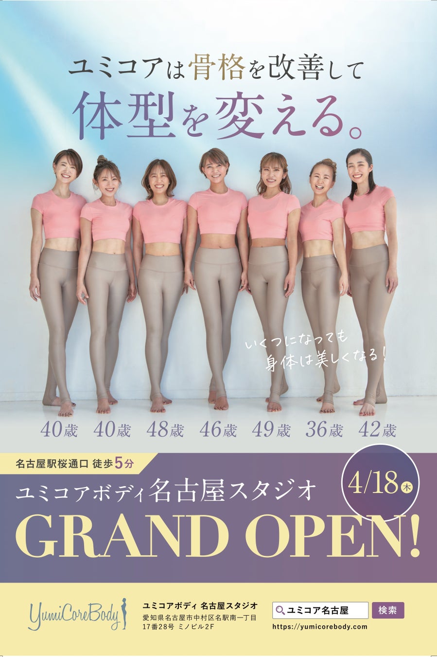"骨からボディメイク"を掲げる株式会社YumiCoreBodyが運営するスタジオYumiCoreBody(ユミコアボディ)が、4/18に名古屋駅前スタジオをOPENします。
