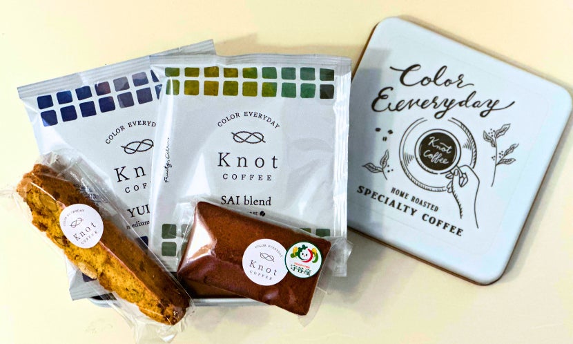 守谷市・Knot COFFEE:「ドリップバックコーヒー&パティシエが作る焼き菓子のプチギフト缶」