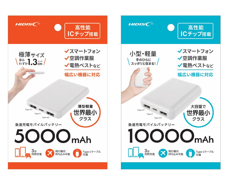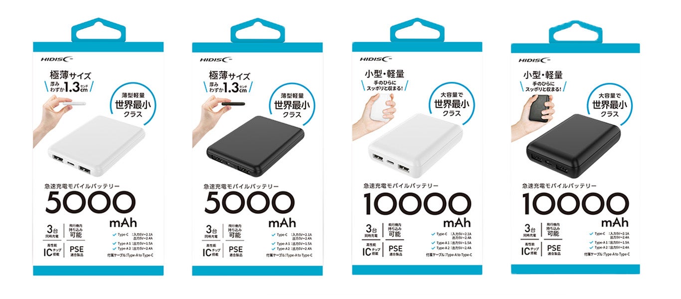 【新商品】HIDISC製モバイルバッテリー「HD4シリーズ」にOPP袋パッケージタイプが新登場!