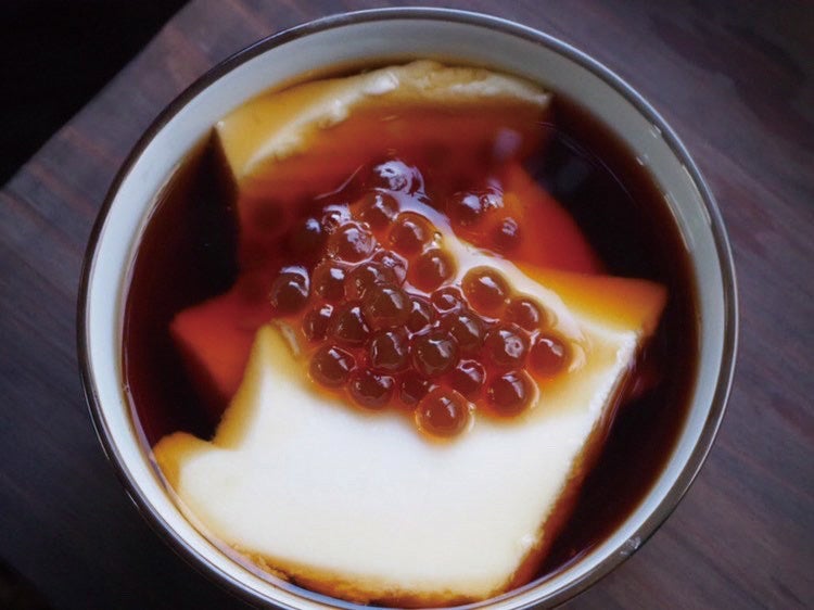 大豆から選び、昔ながらの方法で仕込んでいます。自家製シロップをかけてお楽しみください。