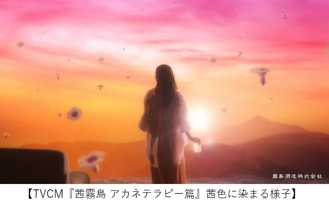 今回のTVCMでは、茜霧島が日常に寄り添う様子を、『アカネテラピー』という言葉で表現。堀田さんが見せる「喜」「怒」「哀」「楽」の表情を通して、茜霧島がもつ魅力を計4タイプのTVCMで伝えています。茜色に染まる霧島山と、茜霧島の桃やオレンジを思わせるフルーティーな香りを引き出す「芋の花酵母」を採取した「花らんまん」の花弁が舞い上がる映像表現で、茜霧島の幻想的な世界観をより豊かに表現しています。