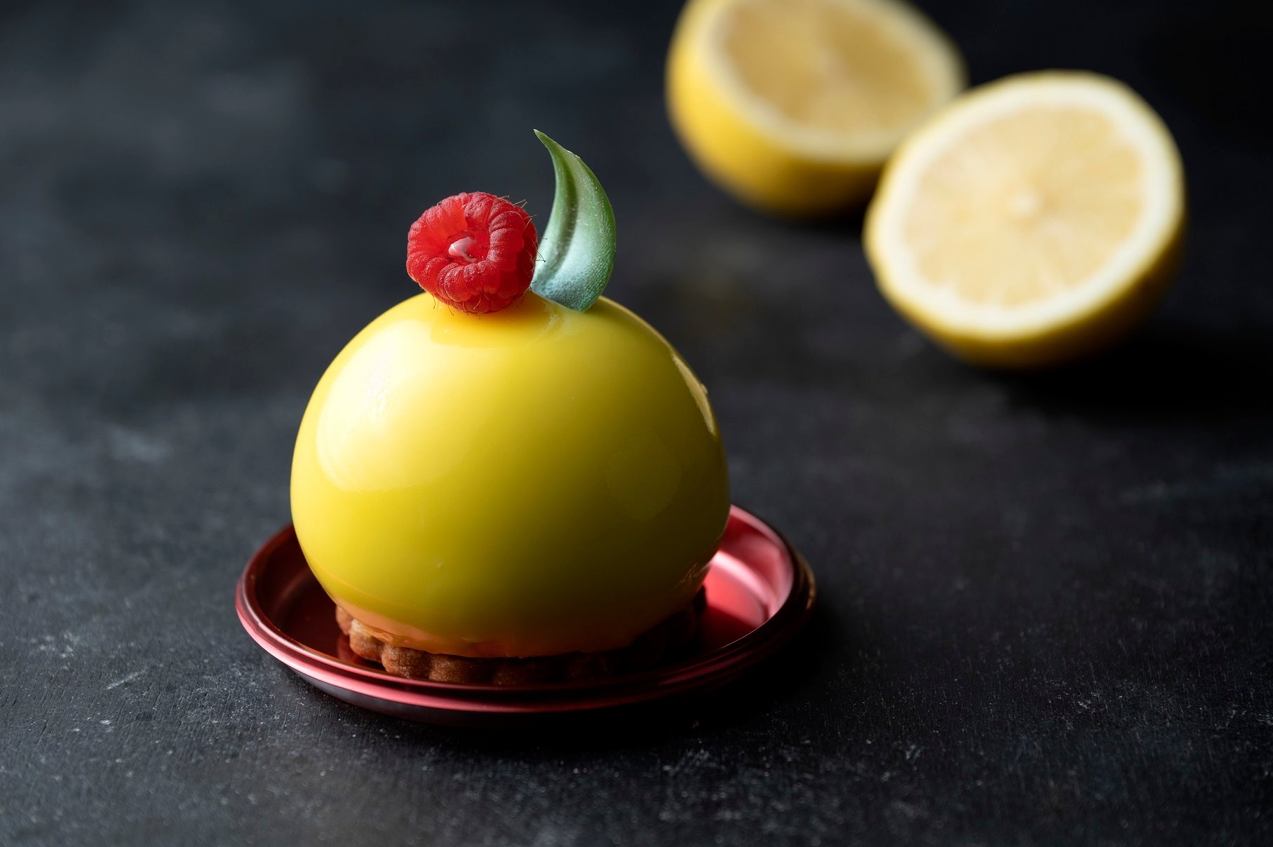 濃厚でなめらかなレアチーズに知多産のレモンのコンフィチュールを忍ばせました。メープル風味サブレの食感もお楽しみください。¥600(税金・サービス料込)
