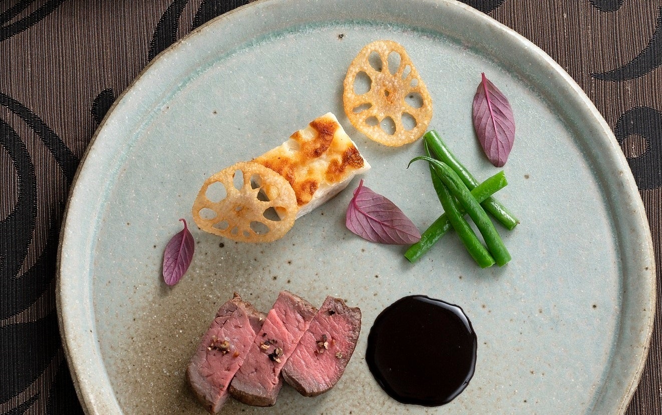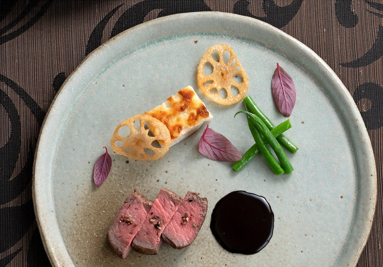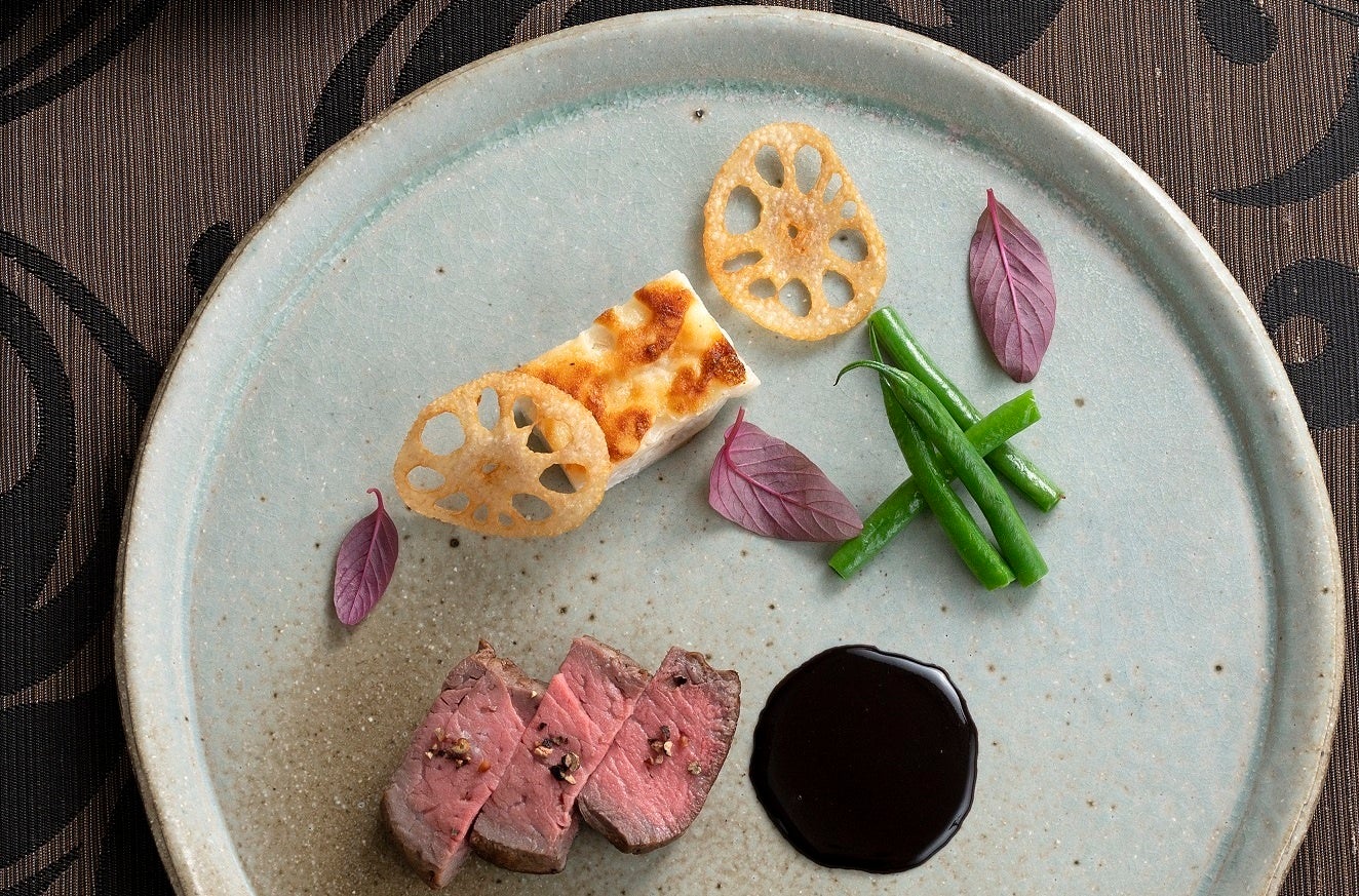 瀬戸焼の器に盛り付けたメインディッシュなど、シェフが本格フレンチで表現する、愛知県尾張地方の“食”の魅力を、存分にご堪能ください。