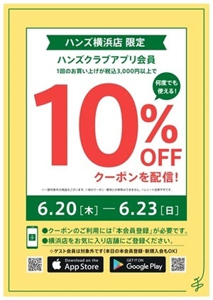 ハンズ横浜店リニューアルオープンを記念して、ハンズ横浜店の店頭でご利用いただける「アプリ会員限定10%オフクーポン」を配信します。