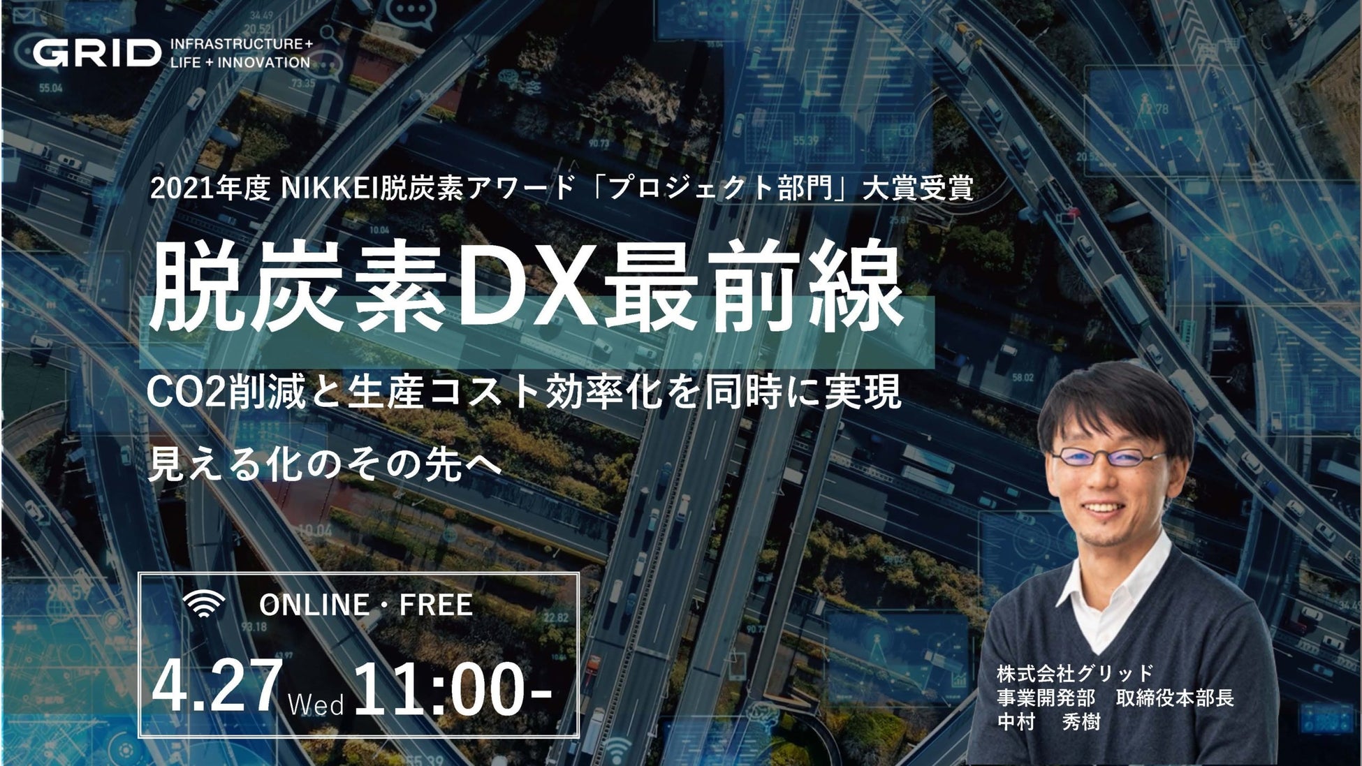 株式会社グリッドは、「脱炭素DX最前線-CO2削減と生産コスト効率化を同時に実現。見える化のその先へ-」をテーマにしたウェビナーを2022年4月27日(水)に開催することをお知らせ致します。