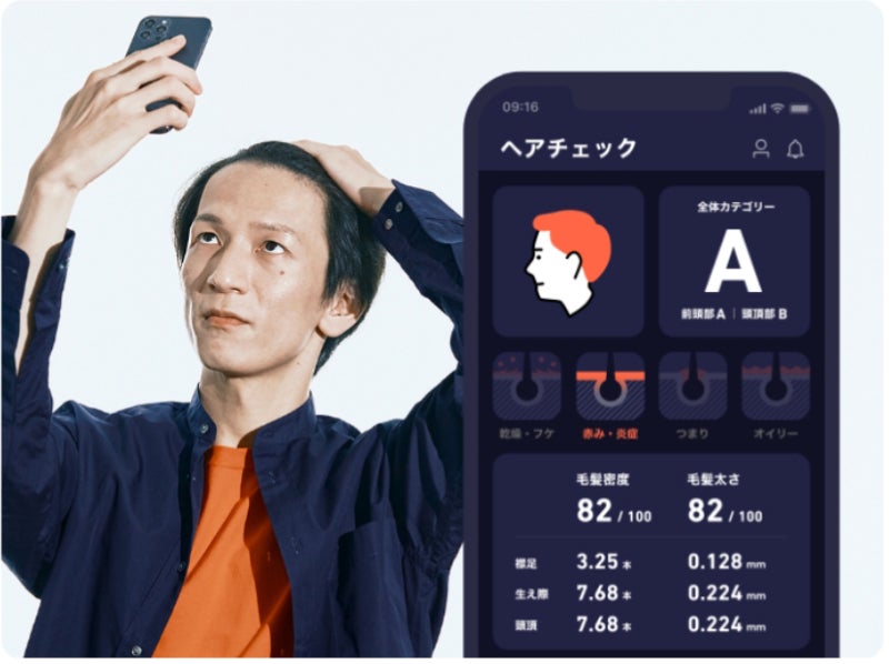 「HIX(ヒックス)」の名前の由来は、Haircare-index(ヘアケアの指針)です。1人1人の薄毛の悩みに寄り添い、テクノロジーを使い科学的根拠のある情報や製品を届け、一緒に解決したいという想いから開発されたAGAセルフケアブランドになります。現在、国内初のAGA管理アプリを中心に、以下のプロダクトを展開しています。