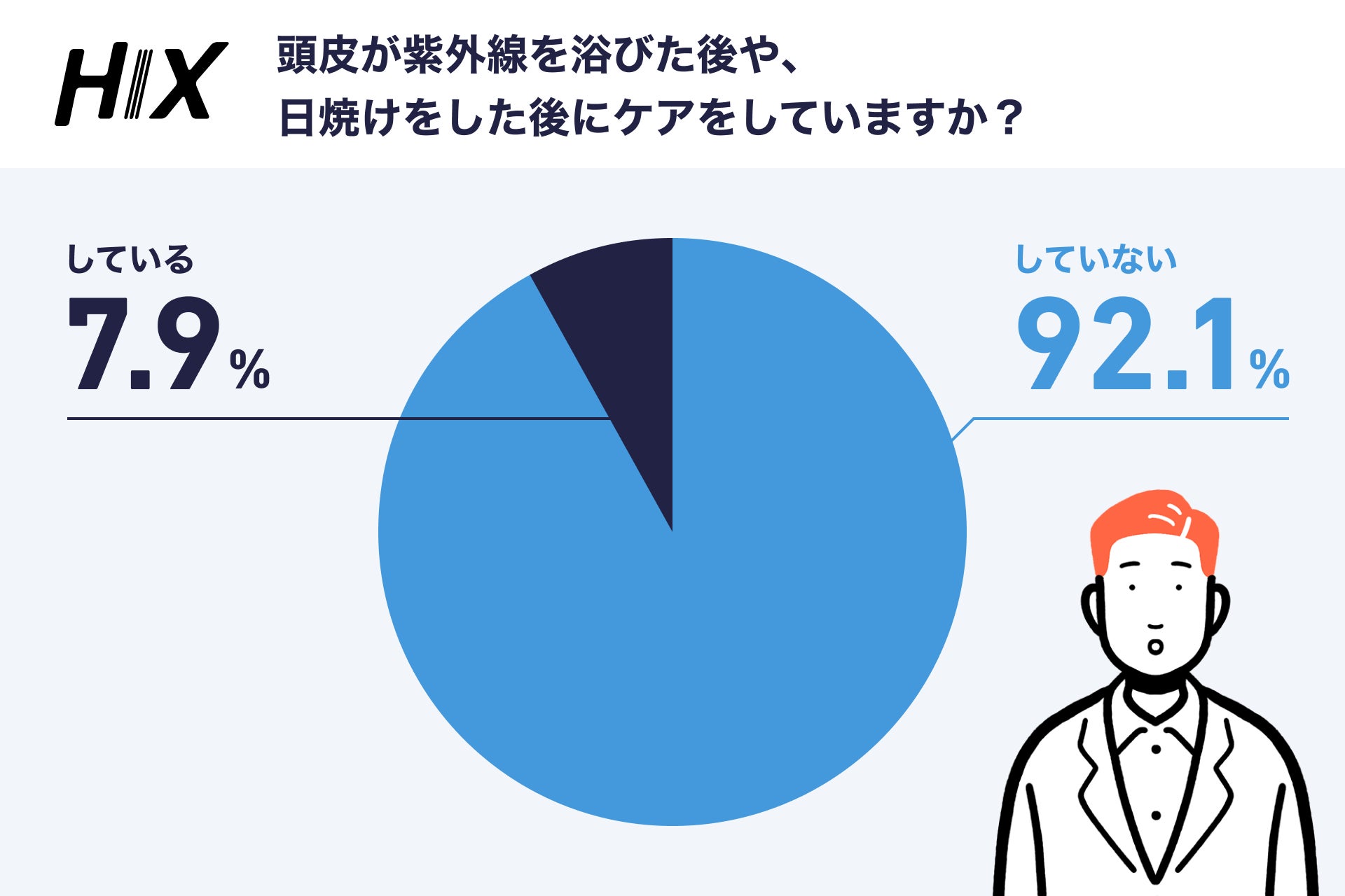 5,頭皮が紫外線を浴びた後や、日焼けをした後にアフターケアをしていない人は92%以上