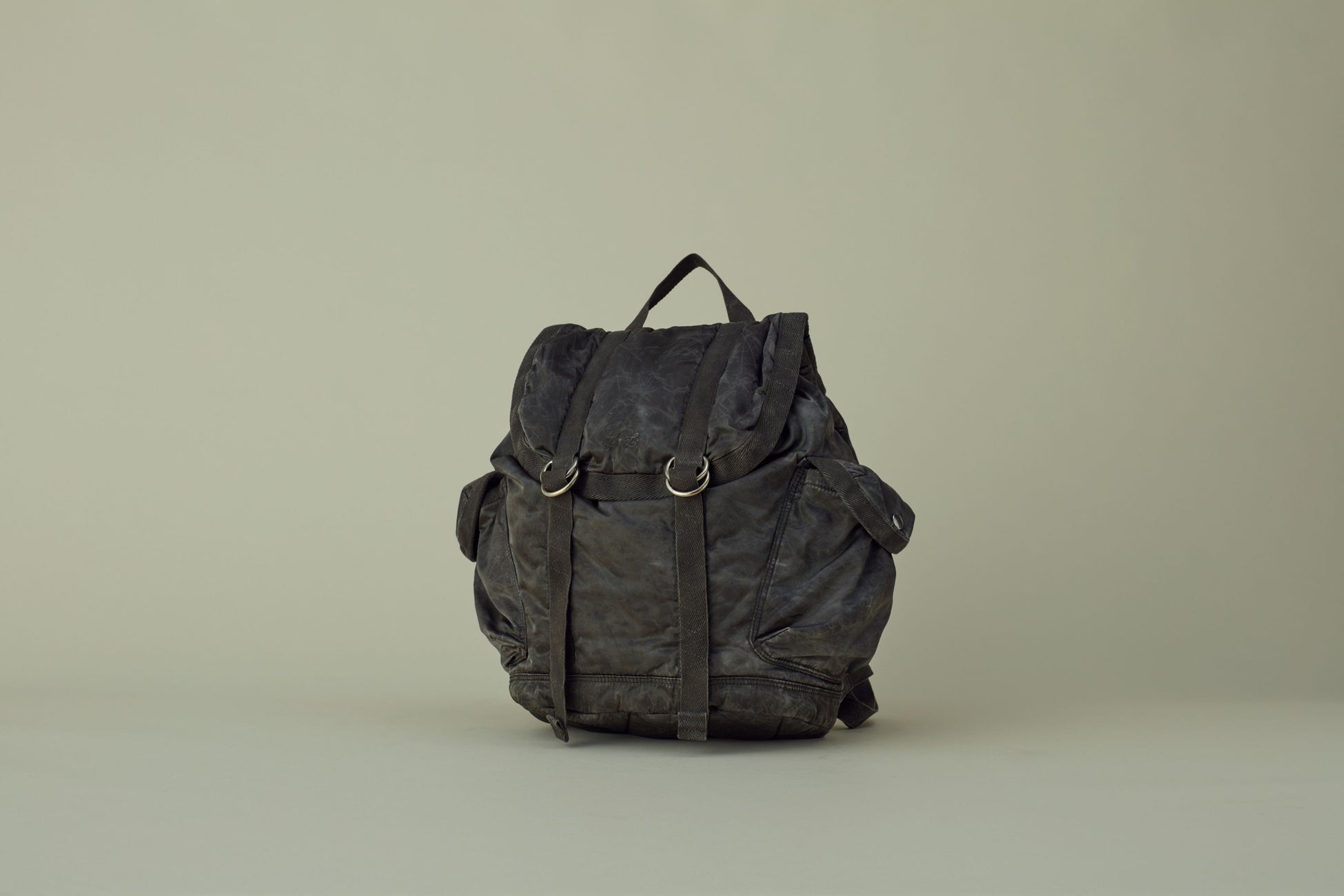 OLDNEW はNEWSPAPER BAG(L) とNEWSPAPER BAG、SHOULDER BAG、RUCKSACKの全4型で、柿渋染めをした「KAKISHIBU」色と、柿渋で下地染めしたバッグを、鉄分の多く含まれた水につけることで黒くさせる「暮染め」を施した「KURE」色の2色展開です。