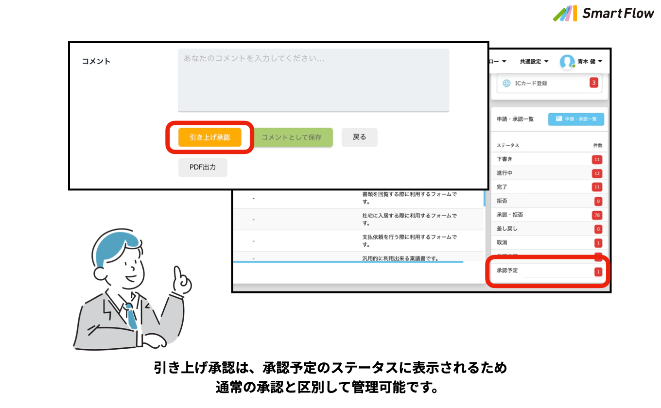 業務改善プラットフォームSmartFlowは、引き上げ承認機能をリリースしました。