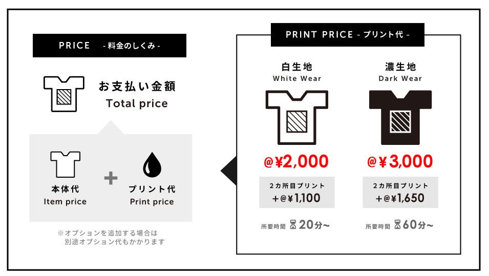 内容 :1日5組限定(先着)で通常2880円(白Tシャツ)の即日プリントサービスを500円で体験いただけます!