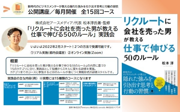 株式会社アースメディア代表取締役CEO 松本淳氏著「リクルートに会社を売った男が教える仕事で伸びる50のルール」 をもとにした公開講座の実施を発表しました。