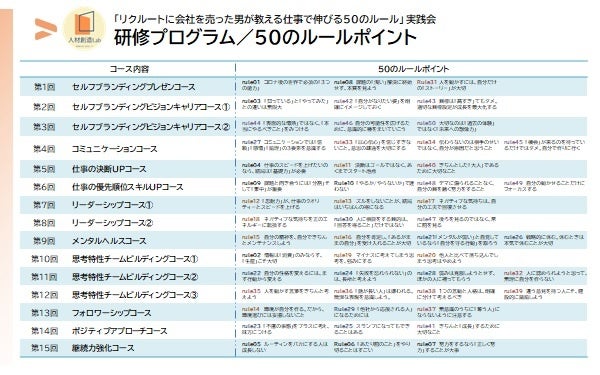 カテゴリ全てのコースに参加すると50のルールが身につく実戦形式の研修スタイルです。