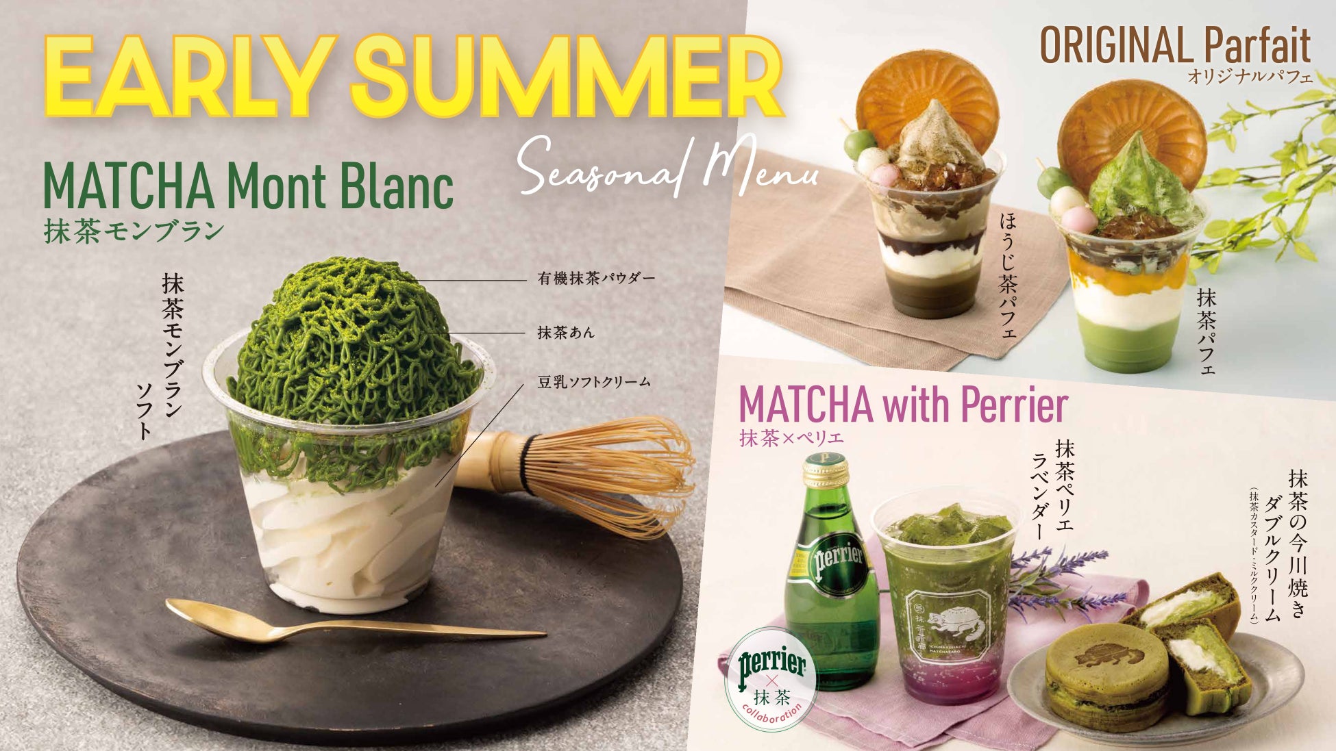 こだわりがつまった一〇八抹茶茶廊のEarly Summerメニューで初夏の訪れをお楽しみください。