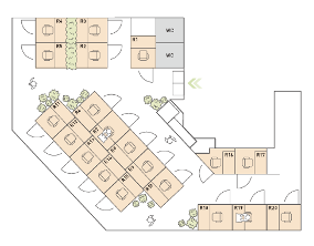 ①室数:個室11室、オープン席14席、会議室(6名用)2室