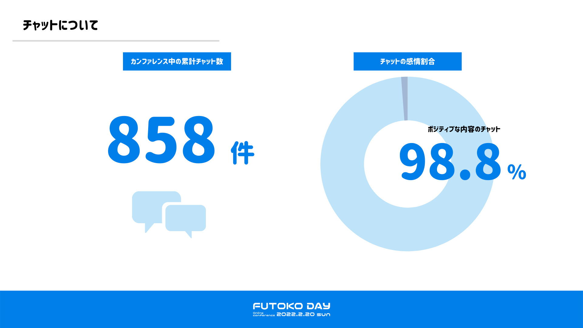 カンファレンス中のチャット数850件以上、98%がポジティブな内容。