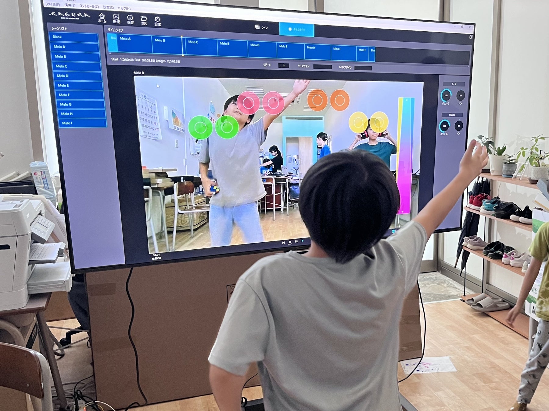 芸術工学博士・中村俊介が率いるしくみデザインが開発したインタラクティブ映像技術を活用し、子どもたちの動きや創作物がリアルタイムで映像に反映される、創造性を引き出すワクワクする運動療育を実現。自らの表現が映像に作用する体験を通じて主体性を育みながら、AIによる動作データ分析によって、これまで困難だった効果測定や個別最適な支援を提供する。