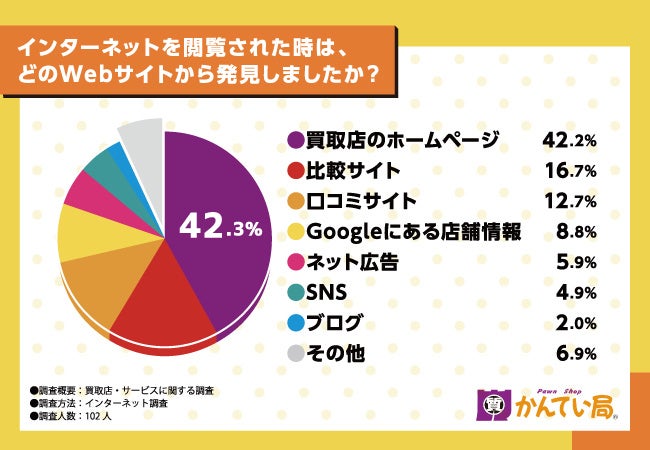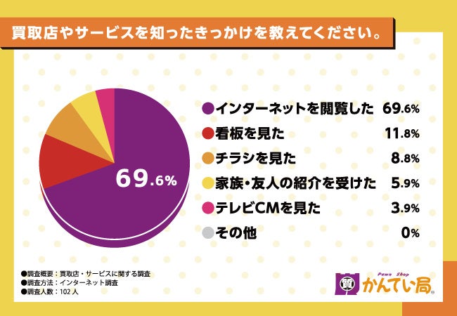 主に、インターネットの閲覧で買取店やサービスを知った方が6割以上を占めることがわかりました。
