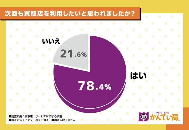 そこで最後に「次回も買取店を利用したいと思われましたか?」と質問したところ、