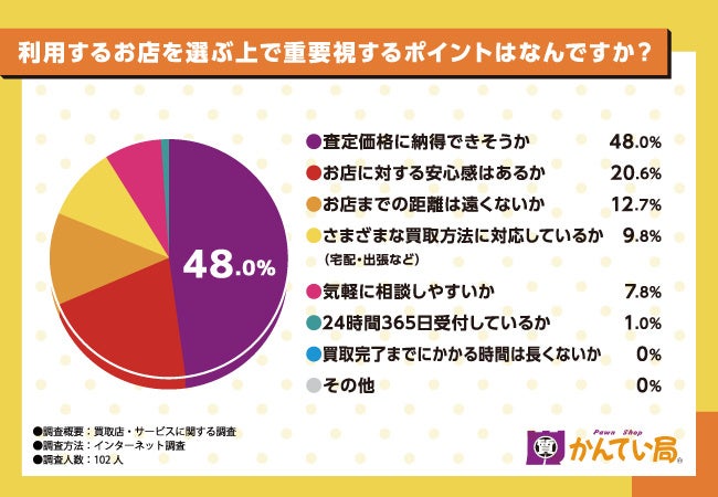 そこで今回、株式会社シンク(https://www.kanteikyoku-shikoku.jp/)と共同で、全国20〜60代の男女102名を対象に「買取店・サービス」に関するアンケートを実施しました。