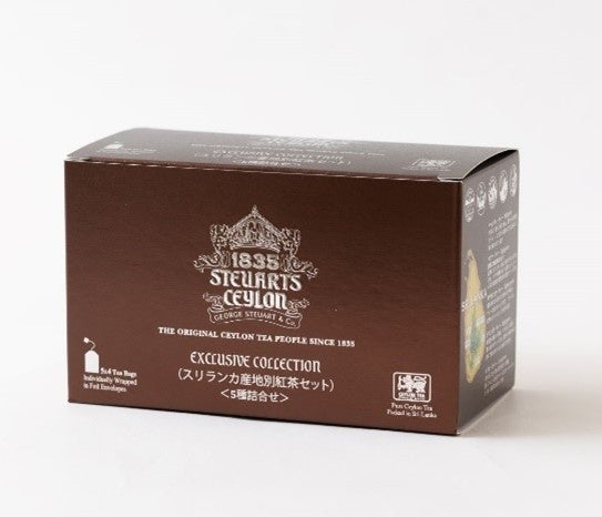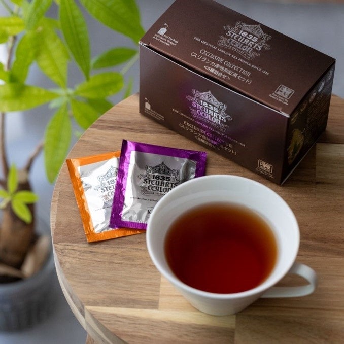 今回発売するのは、1835年創立、スリランカ最古の紅茶ブランド「ジョージスチュアートティ(George Steuart Tea)」のティーバッグセットです。同ブランドは高品質茶葉の剪定から伝統技法での製造まですべて現地で行なっており、同国を代表する老舗企業として知られています。格式高く上質なアロマは、多くのホテルや全日空(ANA)のビジネス・ファーストクラスでも採用。会社設立175年目の2010年には英国王室に献上し、エリザベス女王から写真入りの礼状を贈られました。新商品は同国で紅茶葉の生産地として有名な5つの地域の茶葉を厳選、産地ごとにティーバッグにしたノンフレーバーティーです。紅茶の専門店でも味わうことが難しい単一産地だけで構成された紅茶を、ご自宅で飲み比べて楽しむことができます。