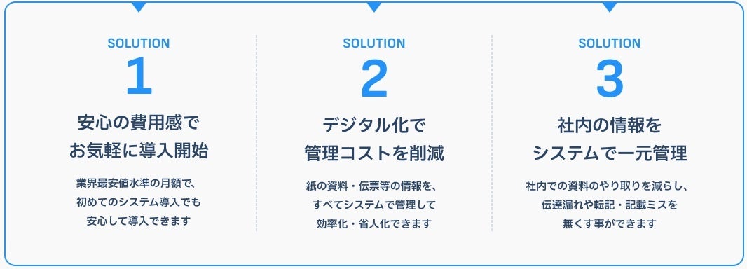 また、月額利用料は3万円/月からとなっており、業界最安値です。(※弊社調べ)