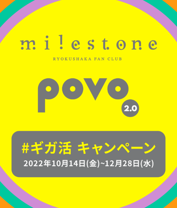 本手法活用の第1弾として、緑黄色社会のオフィシャル・モバイルファンクラブ「milestone」とpovo2.0「#ギガ活」キャンペーン(以下、本キャンペーン)を2022年10月14日(金)から2022年12月28日(土)まで実施します。