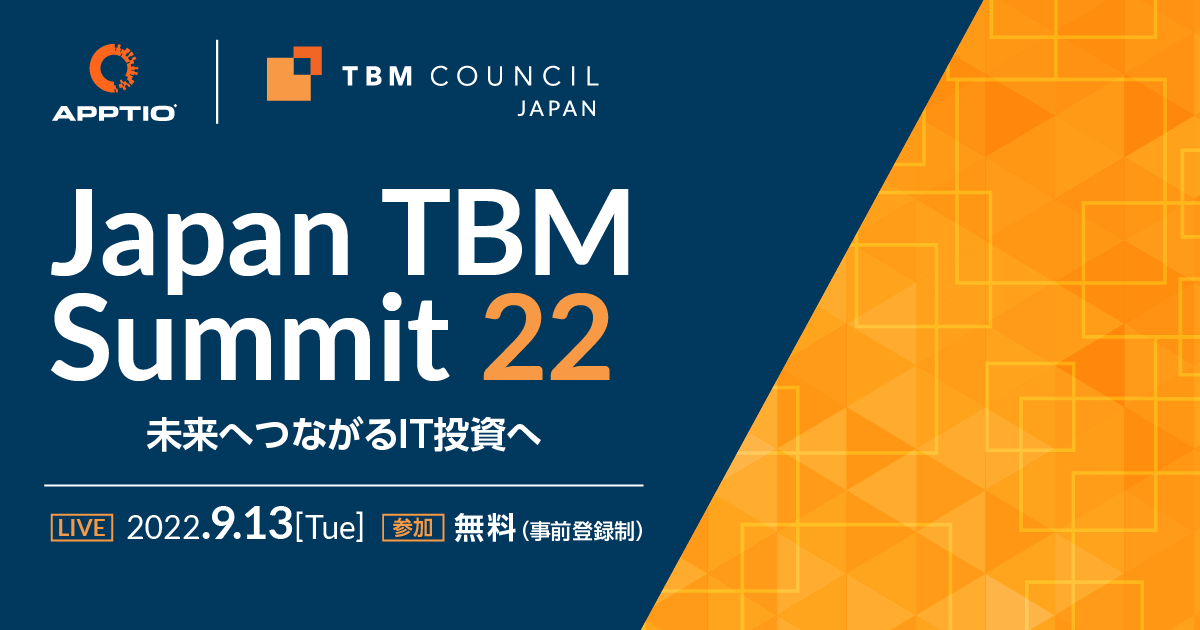 Apptio、DXを推進するITリーダー向けオンラインイベント「Japan TBM Summit 22」を9月13日開催