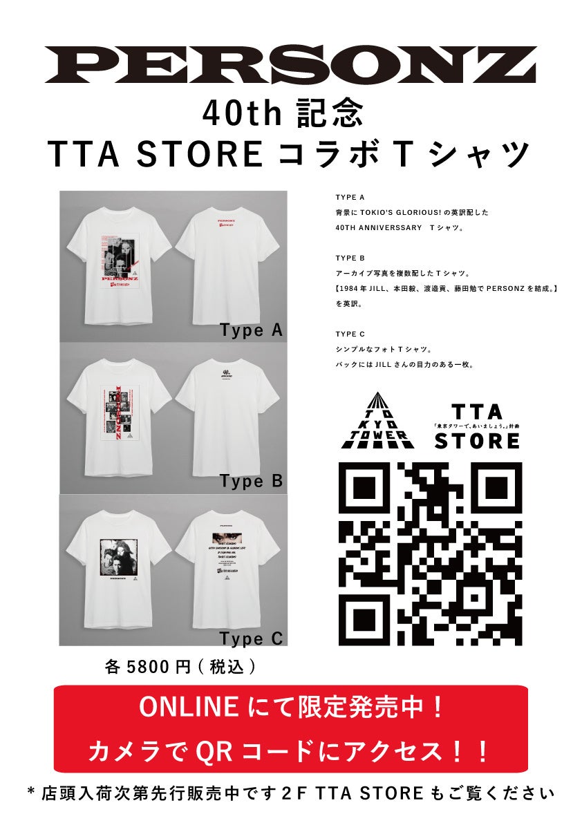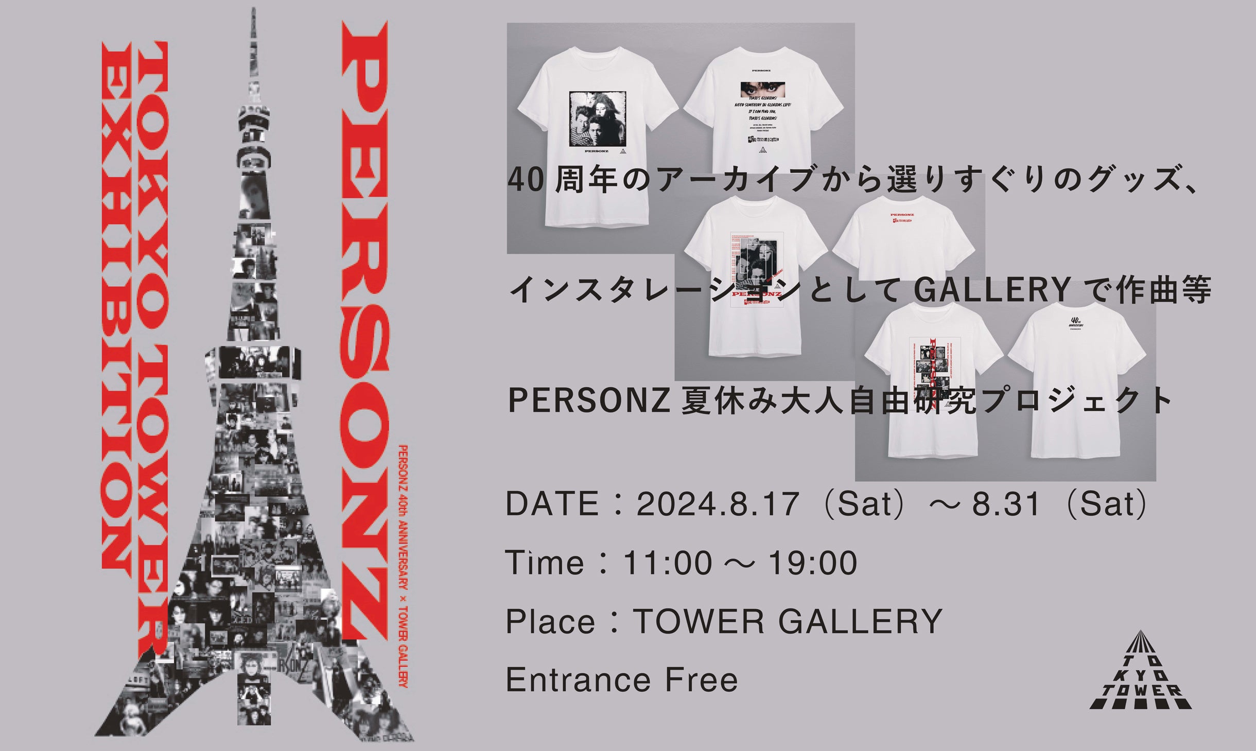 PERSONZ40周年記念展 東京タワー3階TOWER GALLERYにて8月17日~31日まで開催!会場では開催を記念したTTA計画とのコレボレーションTシャツやアーカイブ写真ガチャガチャ等を販売