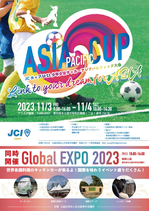 世界平和を見据えた日本初となるサッカー大会U11少年少女サッカーアジアパシフィックカップ名古屋の地、テラスポ鶴舞にて11月3日・4日に開催!to Global EXPO 2023同時開催!