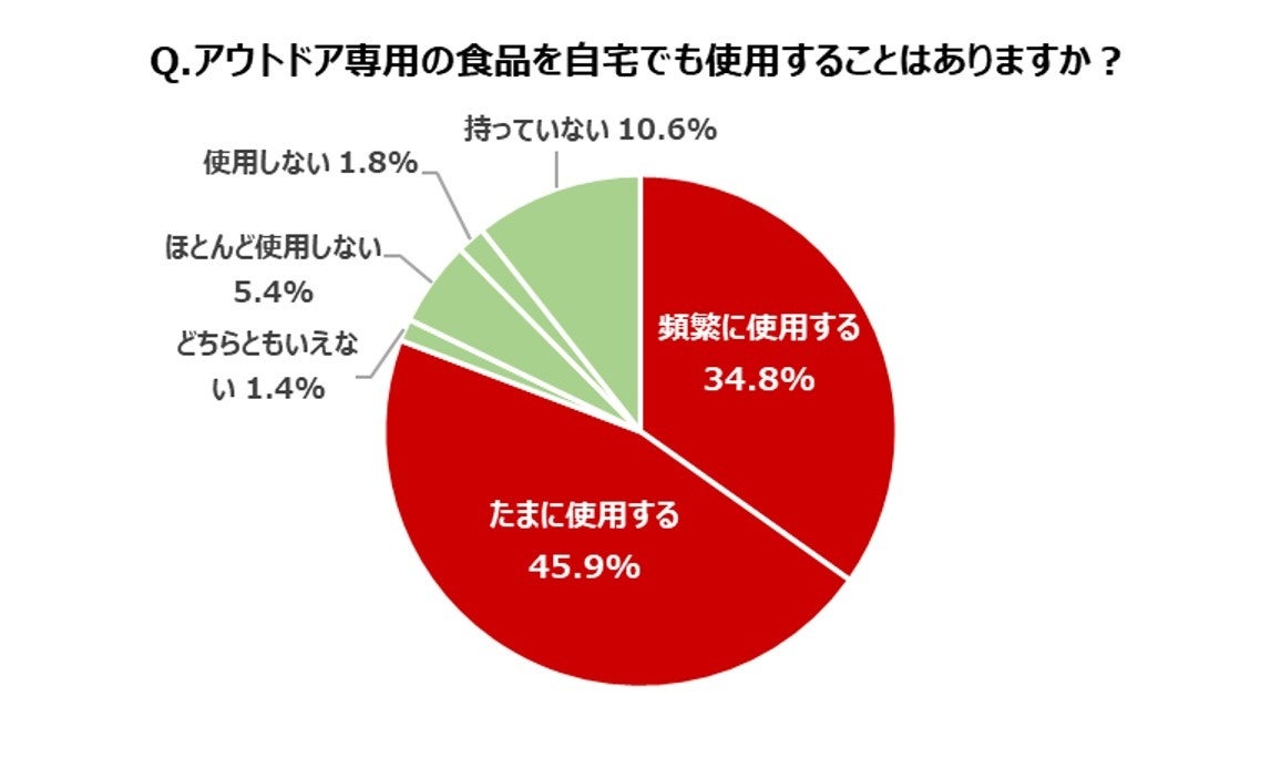 2021年に一度もキャンプへ行かなかった16.4%の人に同様の質問をしたところ、半数が「アウトドア専用調味料を自宅で使用する」と回答しました。このことから、キャンプ飯が、キャンプを体験したことがない人にも注目されており、アウトドアのインドア化の流れがより強い傾向として表れていると言えそうです。