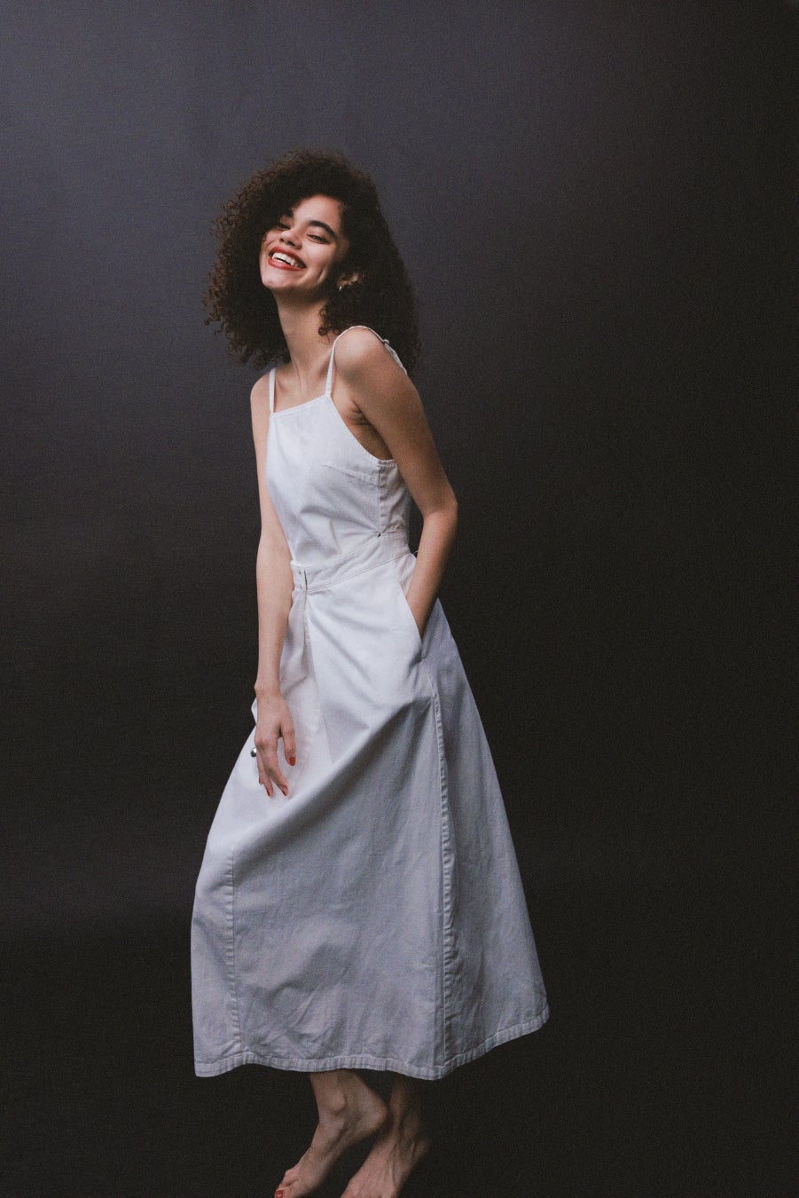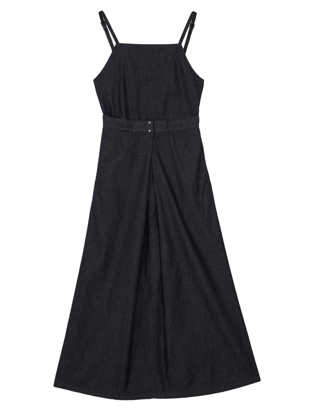 カジュアルなデニムを、モードなデザインにしたドレス。ウエストのホックディテールとシンプルなセミフレアのシルエットで大人な印象に仕上げています。LEEオリジナルのロゴパッチもポイントです。加工映え・ドレープ感が出やすい、ライトオンスのデニムを使用しています。