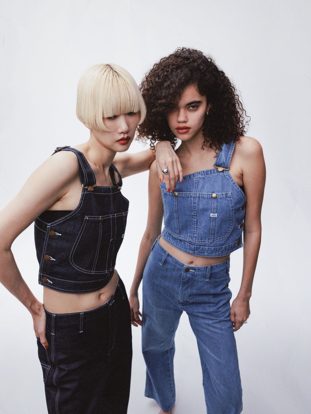 「Lee」定番のアイテムを「AMERI」らしいモードなデザインやシルエットに落とし込んで作成した特別なコラボアイテムが完成しました。初コラボレーションとなる今回は、デニムドレス、セパレートで着用できるオーバーオールに加え、キャップやタンクトップの4型を展開します。