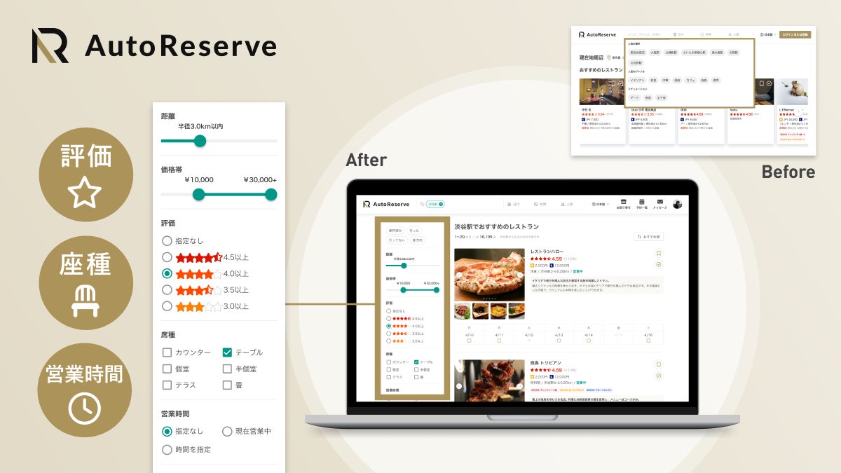 AIによるレストラン予約サービス「AutoReserve」検索機能をアップデート。おいしいお店とより出会いやすく