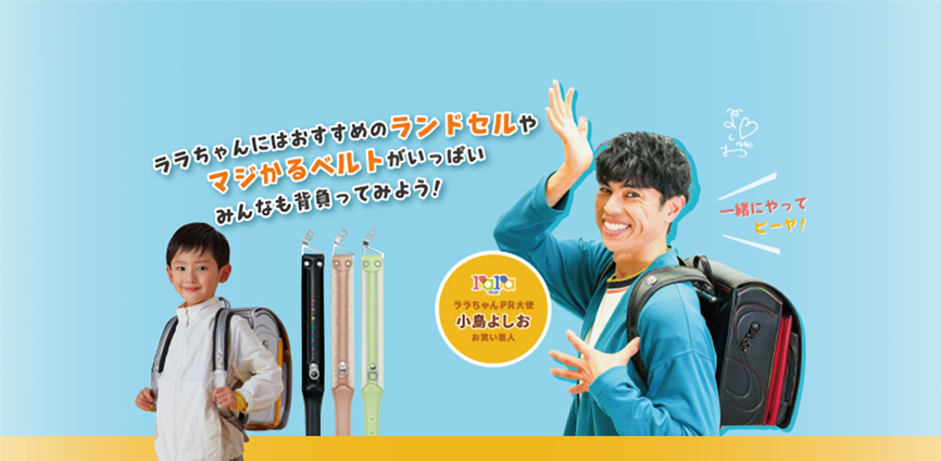 【ララちゃんランドセル】小島よしおさん「ららや」の公式PR大使に就任! 〜子どもたちに「楽しく学ぶ」大切さを伝える〜