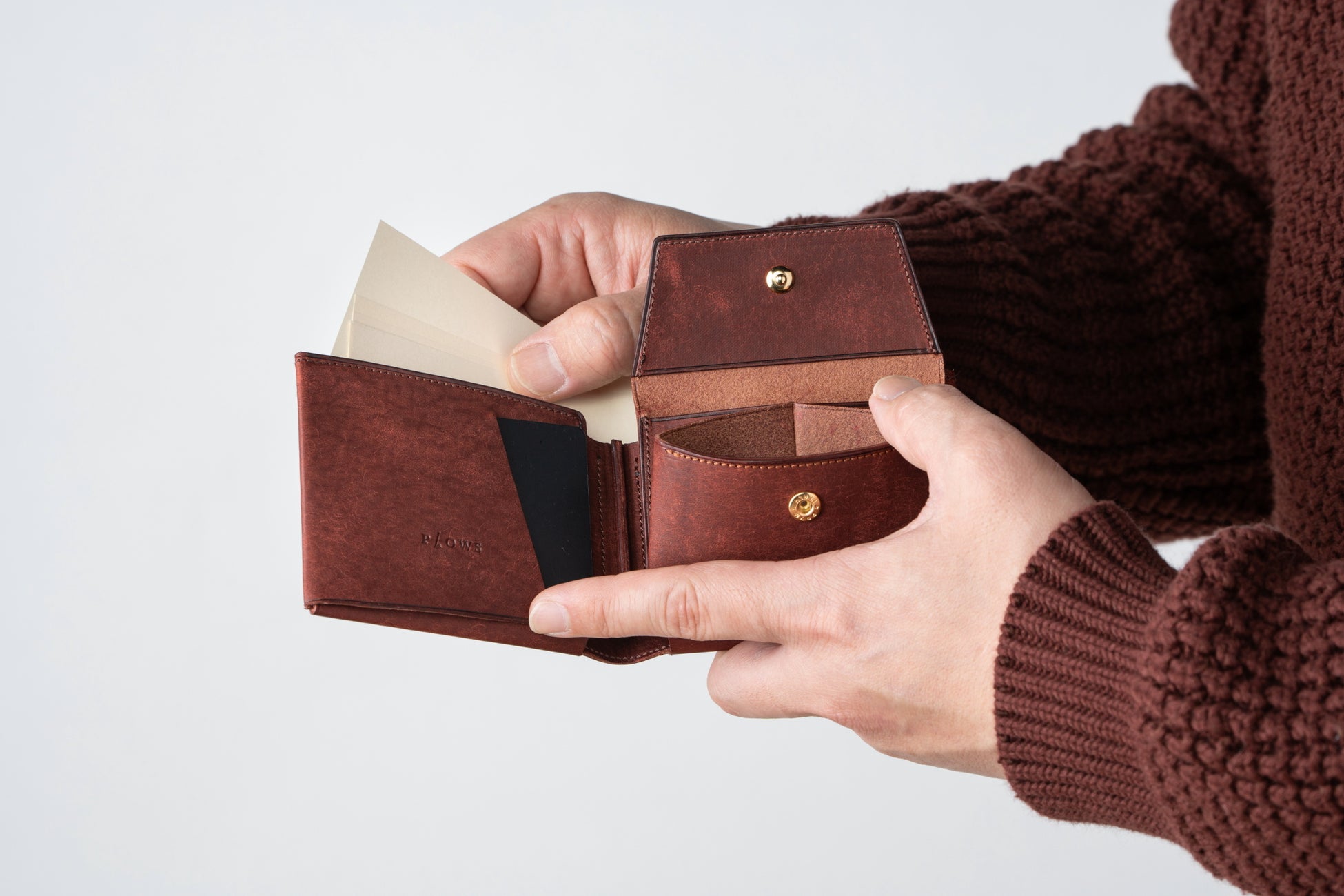 シーンや気分に合わせて、一つの財布で二通りの使い方が楽しめる新感覚のレザーウォレットです。