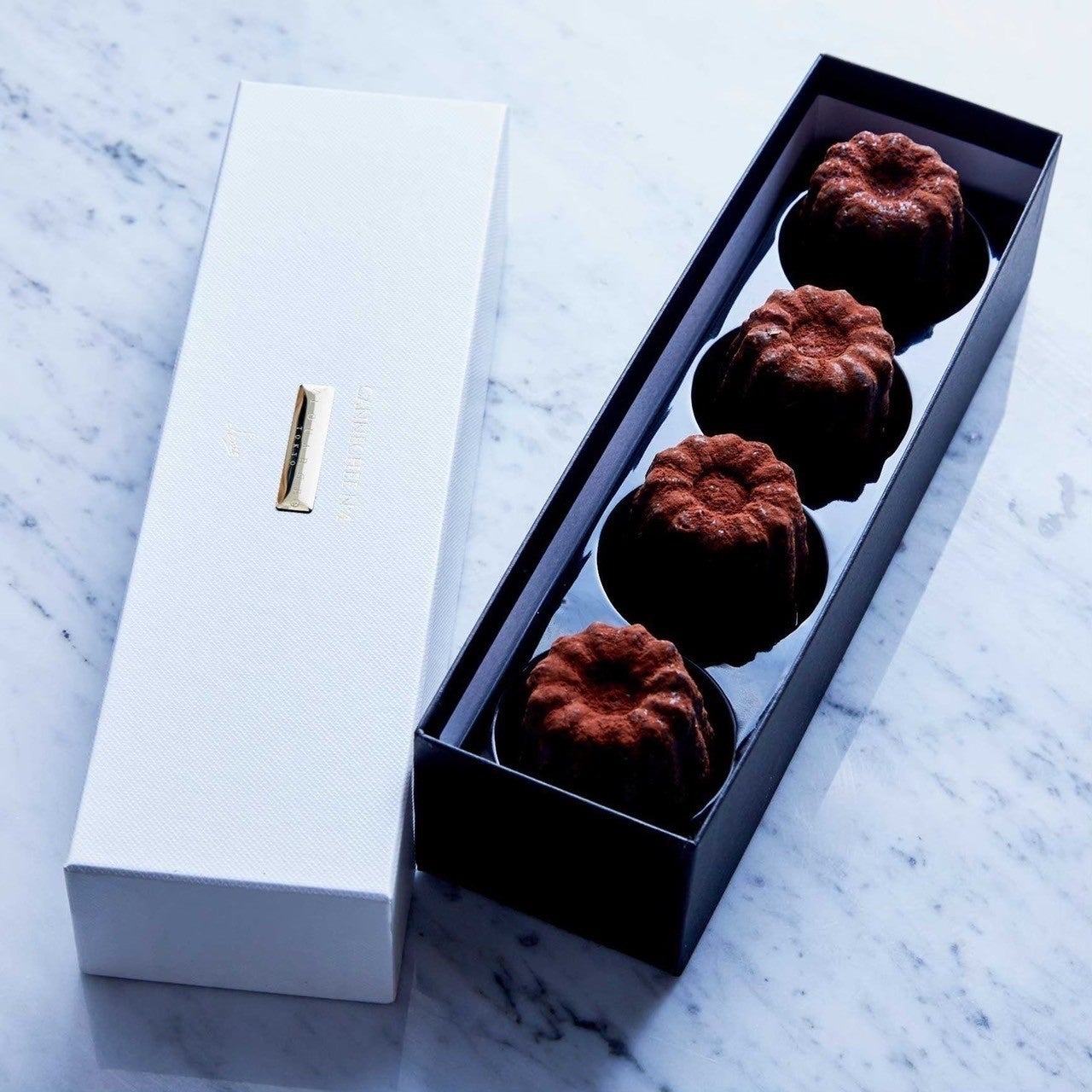 チーズケーキ×カヌレの新感覚スイーツ「カヌチー」。その人気の 「カヌチー」にバレンタイン商品としてショコラバージョンが登場。 銅型に蜜蝋を流し焼き上げることで、外はカリッと中はモチっとした食感に仕上がっています。¥2,646(税込)テイクアウト