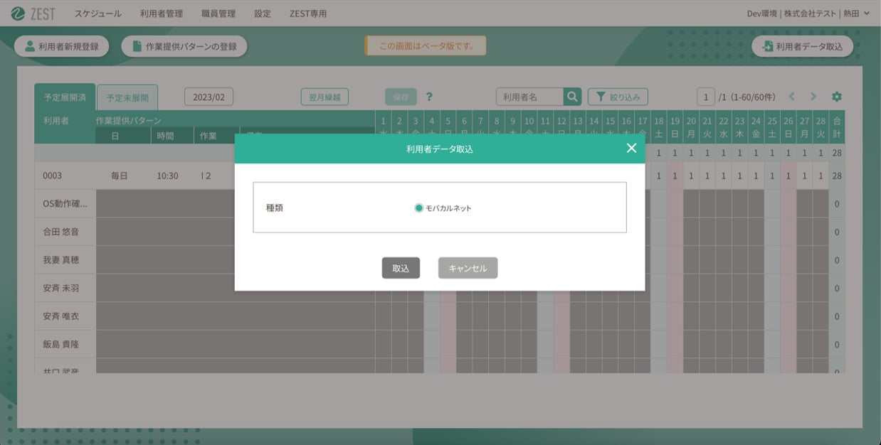 2 ZESTで作成したスケジュールをモバカルに戻せるのでその後の事務作業も軽減