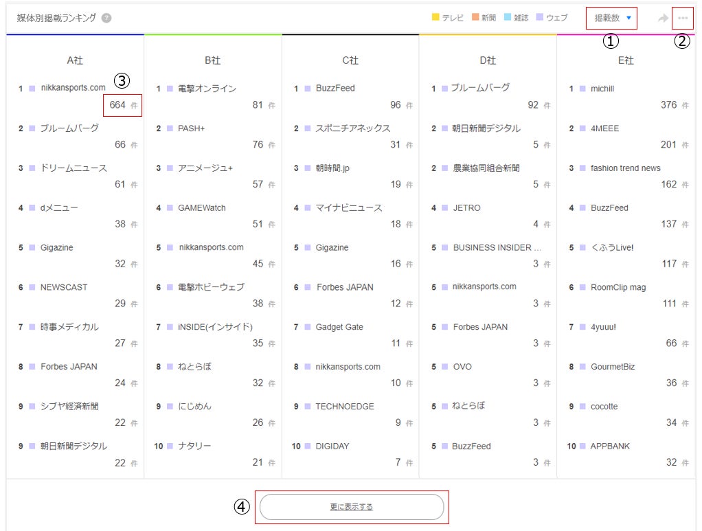 - 「更に表示する」ボタンを押すと、上位30位までの媒体を確認できます。