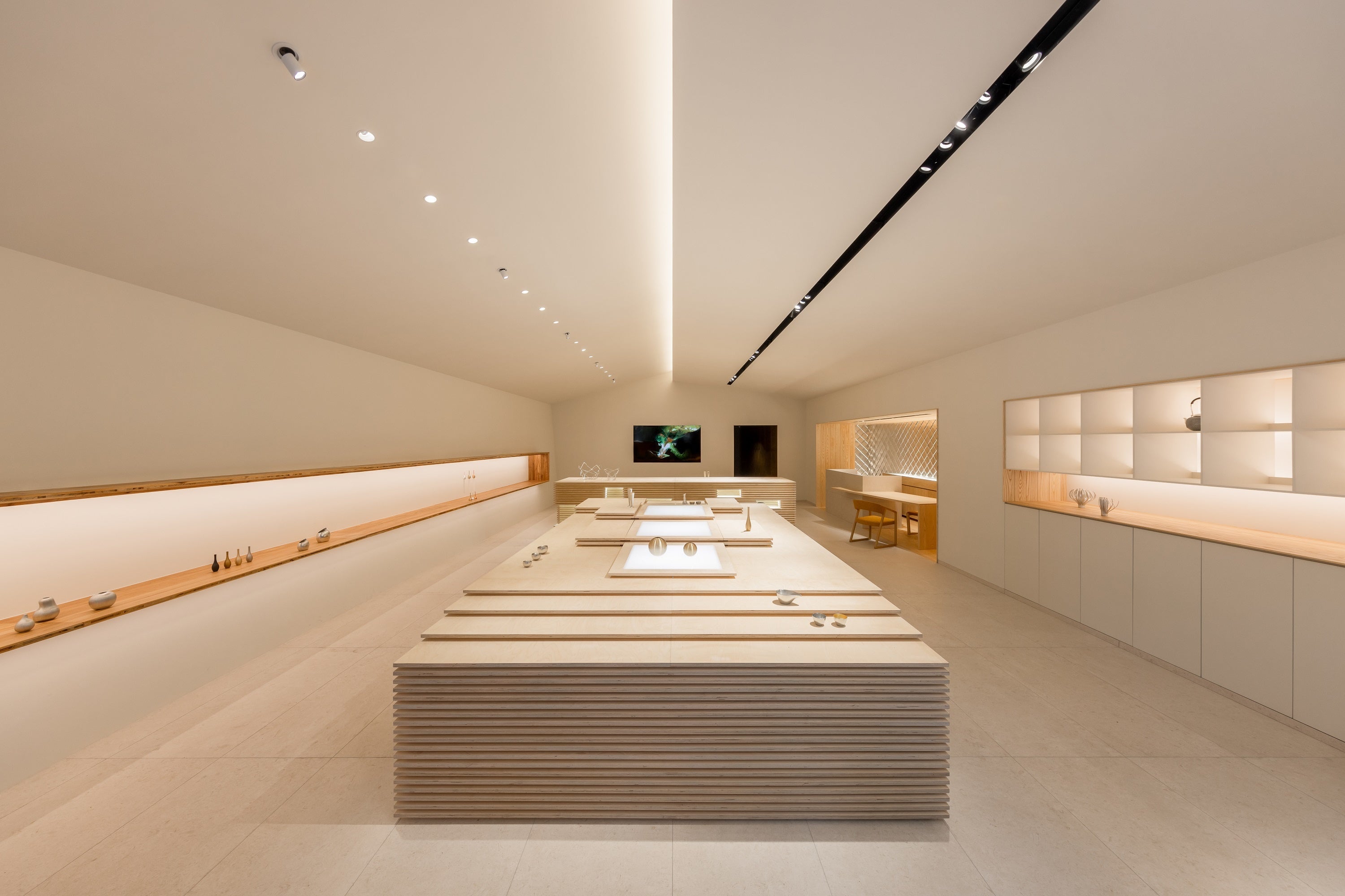 店内の什器は、台湾の著名プロダクトデザイナー・Pili Wu氏(無氏製作)が手掛け、能作の歴史や100年以上にわたり蓄積された伝統技術の「積み重ね」、人々の交流の場としての「集い」を表現しました。