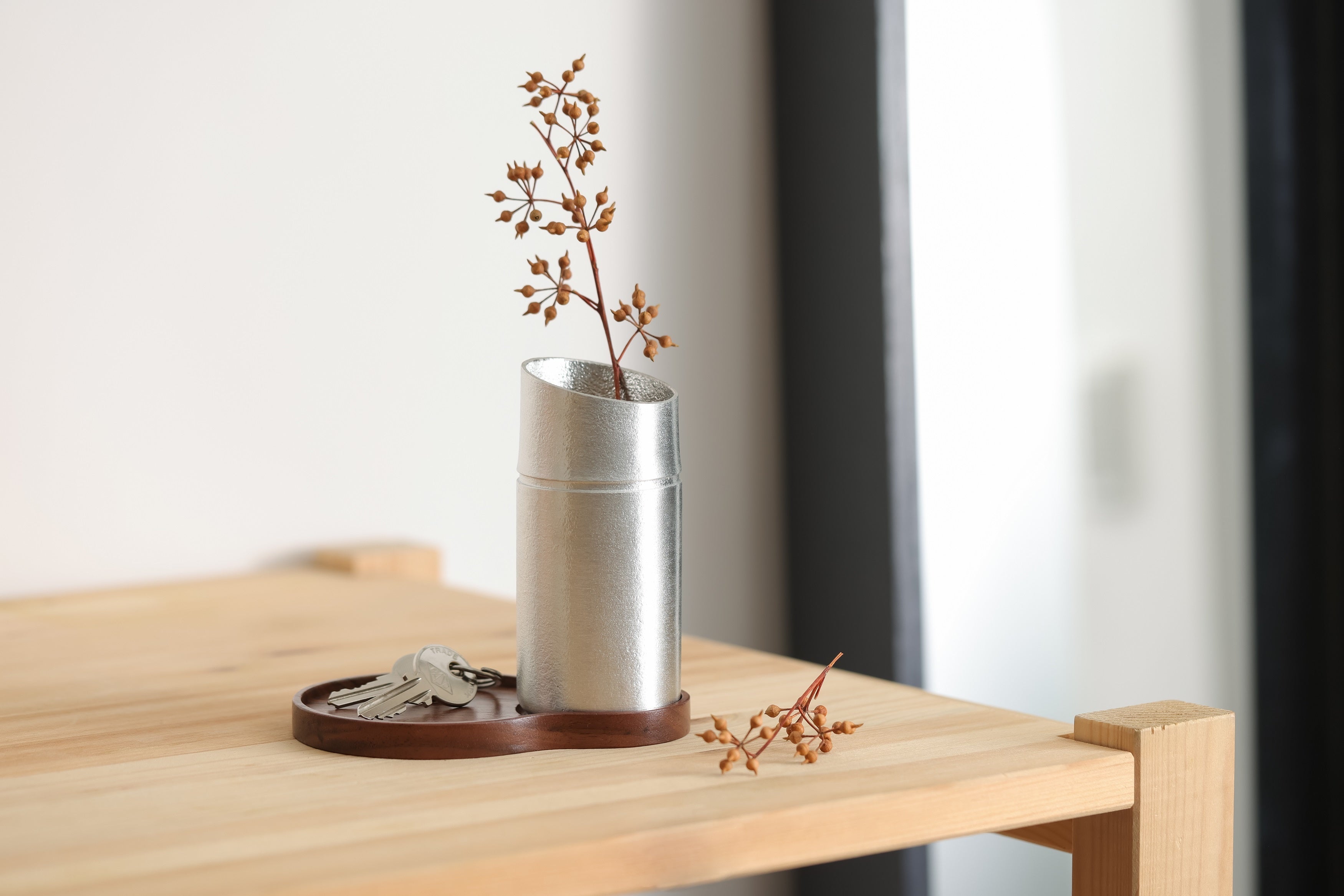 製品内容:錫100%製小物入れ(日本製)、ウォールナットトレー(台湾製)