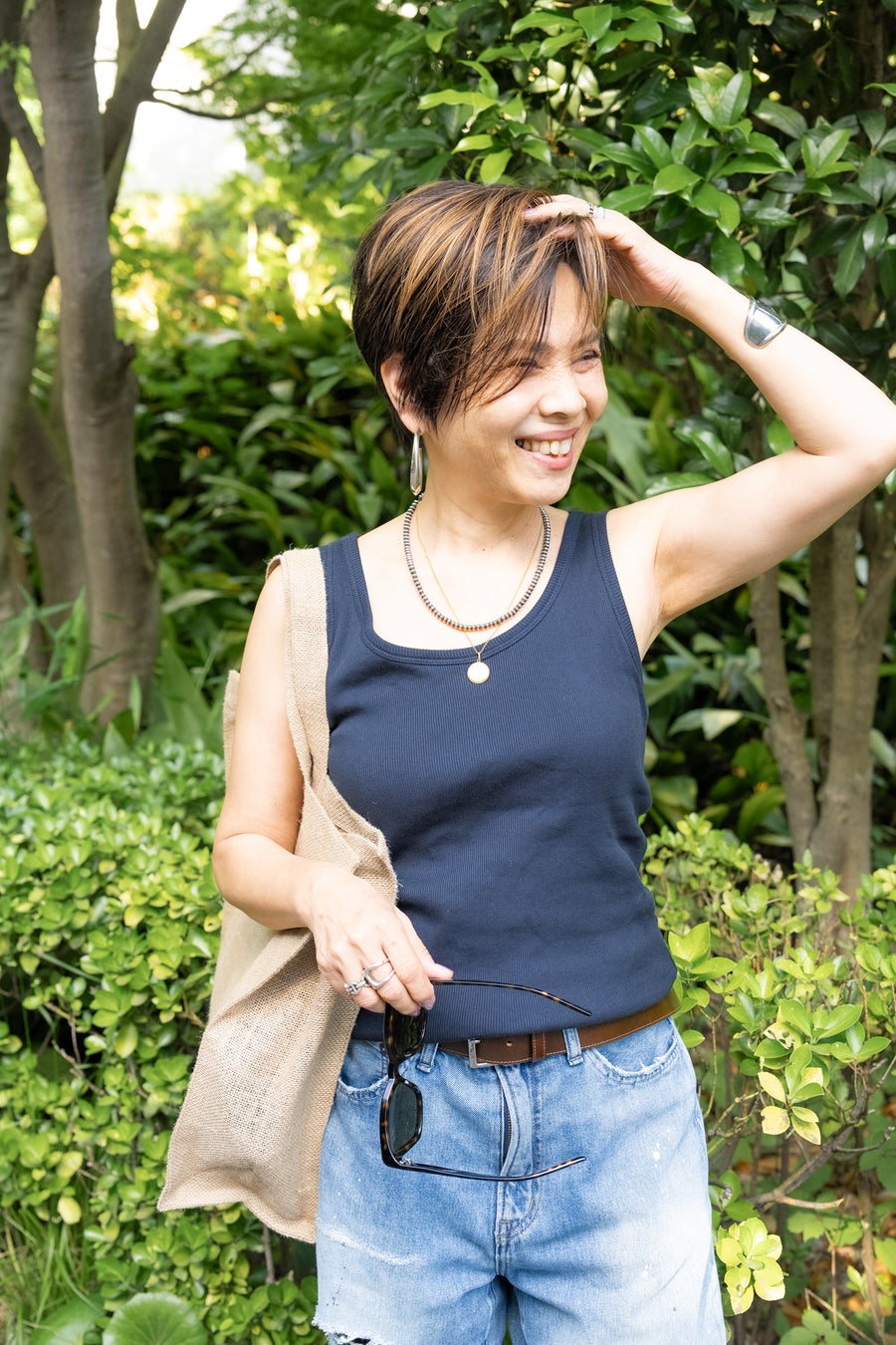 ブランドの原点となる、大人の女性を引き立てるシャツやデニムなどデイリーに着こなせるアイテムを取り揃え、シンプルでありながらカジュアルでハンサムなスタイルを表現しています。