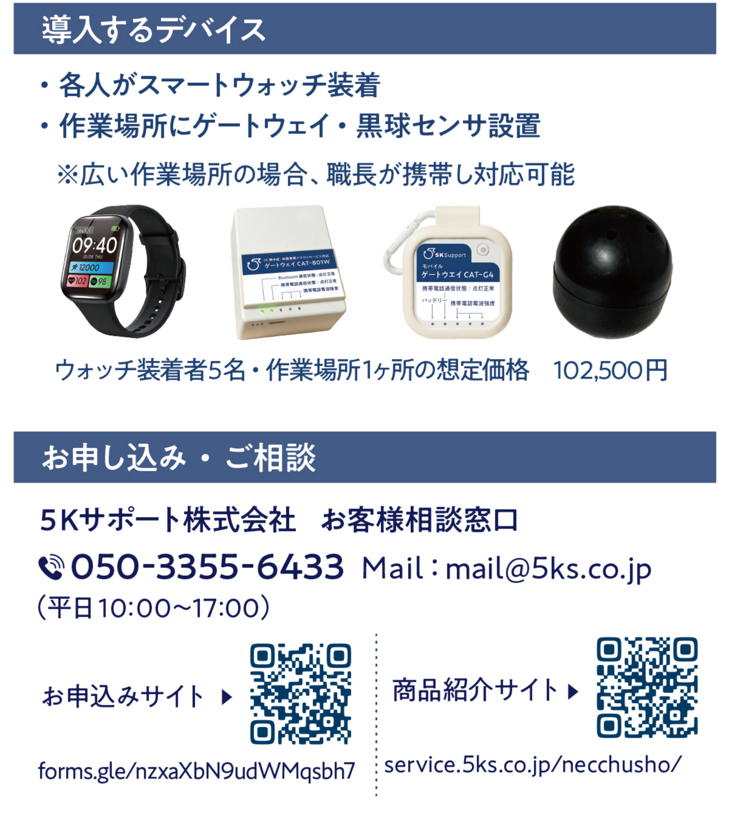 5Kサポートは、現場の安全対策を“感覚”ではなく、データに基づいた運用として定着させるための仕組みづくりを支援してまいります。