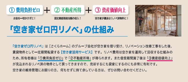 空き家をリスクゼロで有効活用!北陸の不動産会社さくらホームが「空き家ゼロ円リノベ」サービス開始