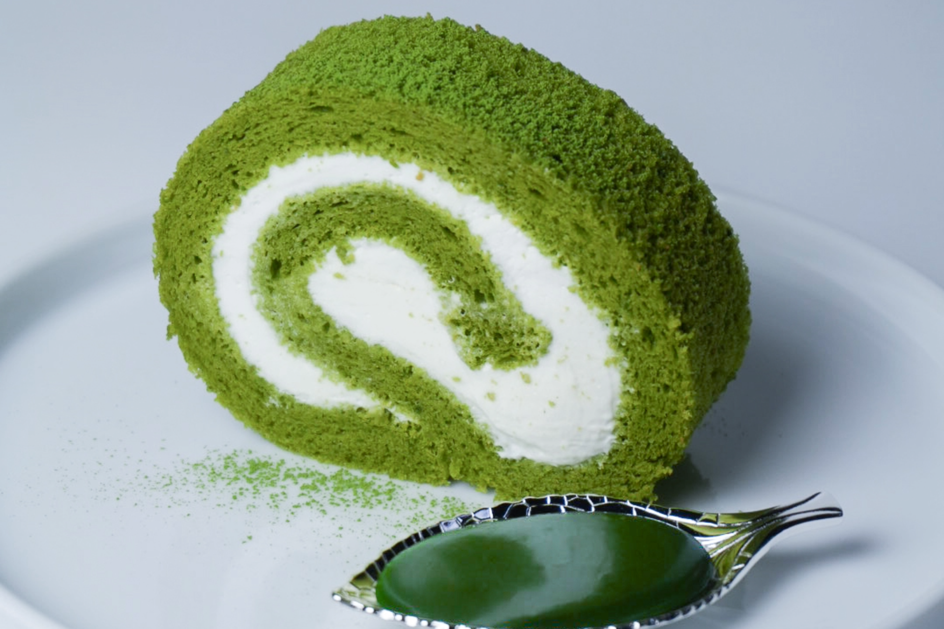 優しい甘味の生クリームをふわっとした抹茶生地で包み、自家製抹茶生キャラメルを添えました。1つで2度楽しめる抹茶ロールケーキです。