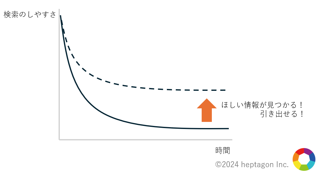 時間経過とともに減少する「検索のしやすさ」をボトムアップ