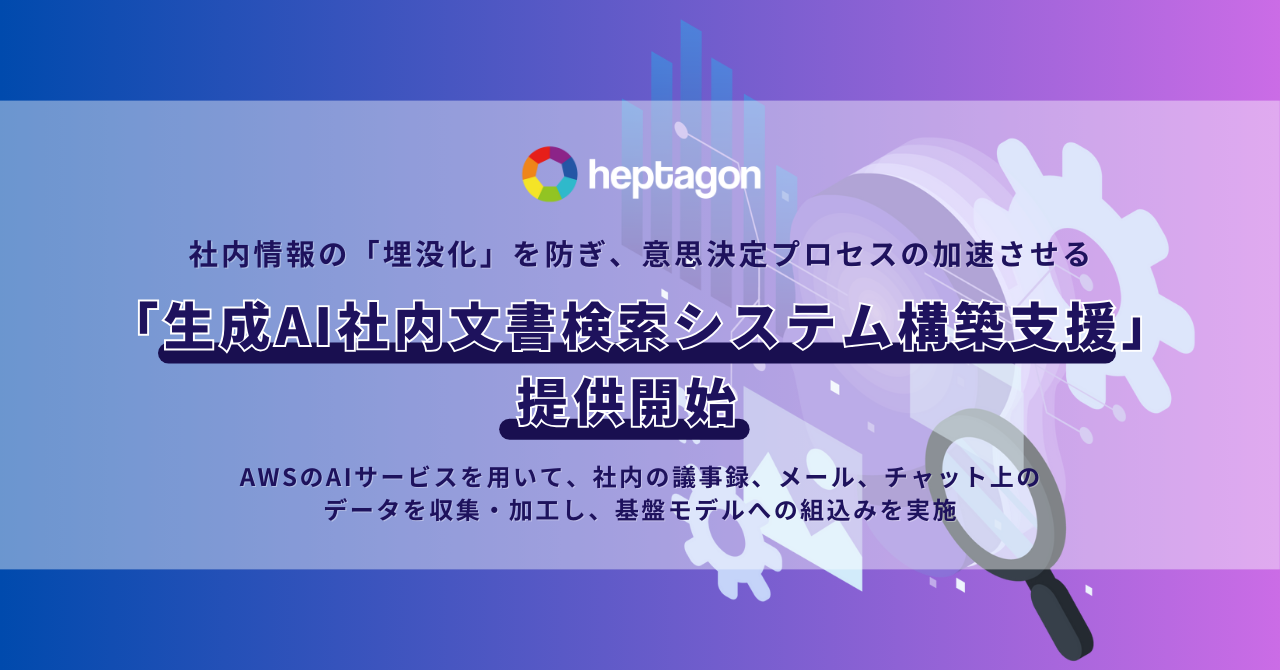 ヘプタゴン、社内情報の埋没化を解決する新サービス「生成AI社内文書検索システム構築支援」を提供開始
