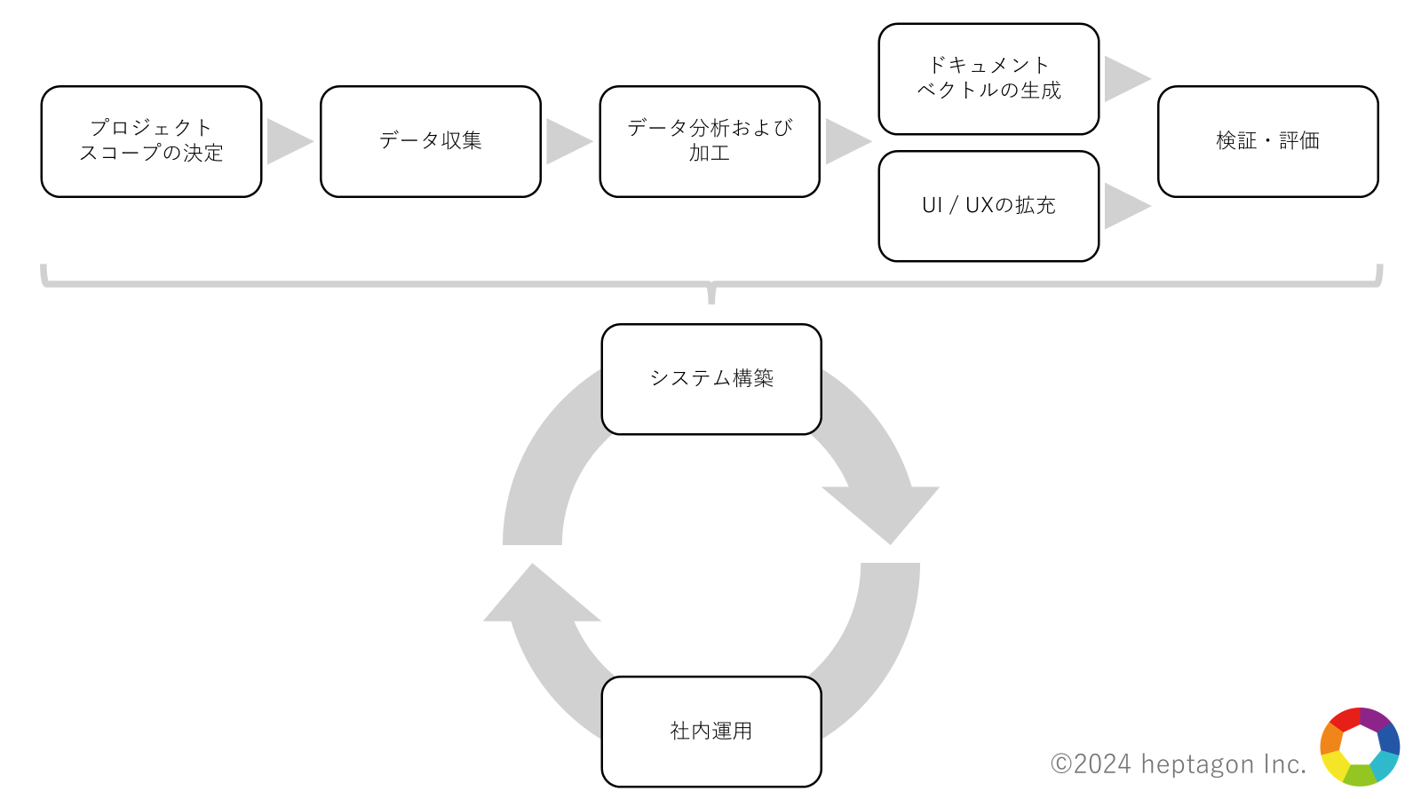 ヘプタゴンの生成AI社内文書検索システム構築支援はサポート範囲の柔軟性が特徴です。AWSのクラウドサービスを活用した高度なAI/機械学習システムの導入・開発実績を強みに、お客様の要望に合わせて、システム構築プロセスの一部に限定した支援からプロセス全体支援まで幅広く対応いたします。