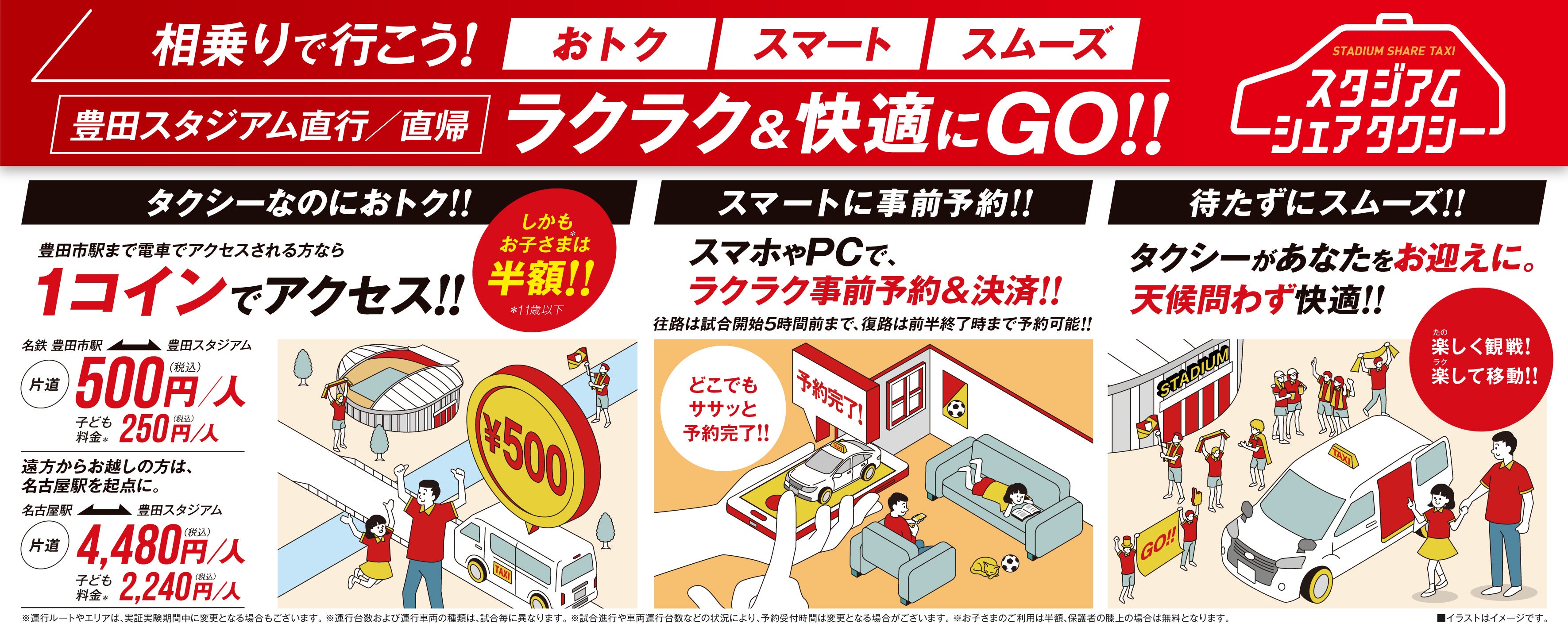 【2022年に引き続き、名古屋グランパスホームゲームでの運行決定!】トヨタ・コニック・プロとNearMeによる豊田スタジアムまでの送迎サービス『スタジアムシェアタクシー』で楽々&快適にアクセス