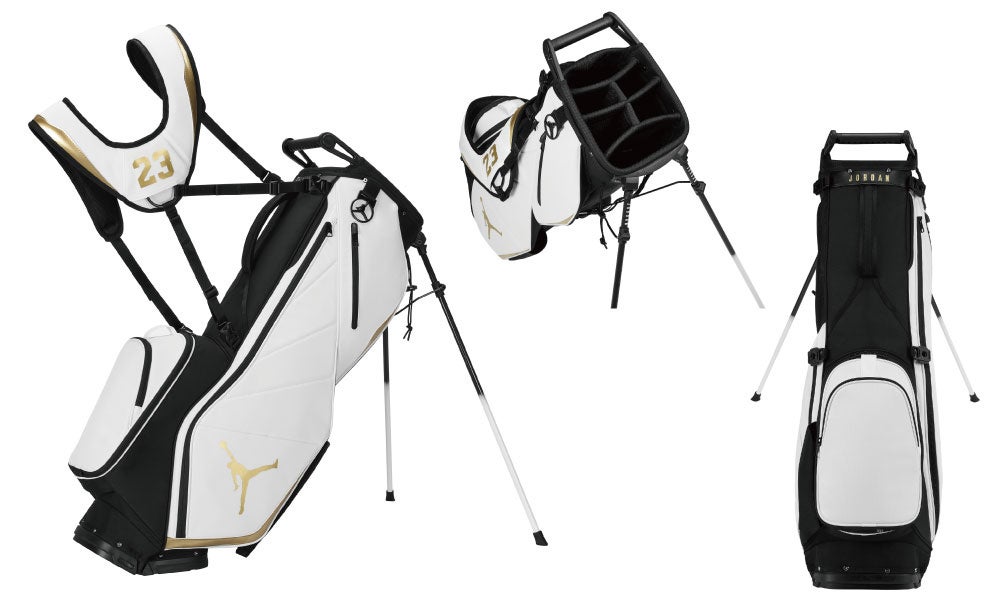歴代エアジョーダンシリーズのモチーフを様々な場所に落とし込んだデザイン。ゴルフバッグを背負うと背番号23が背中に来る仕様。