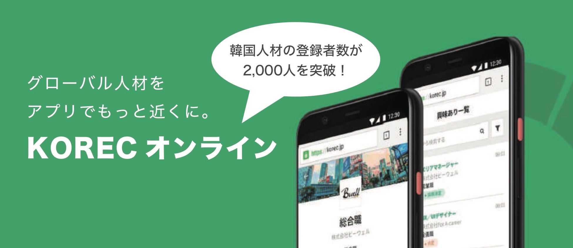 韓国人材に特化した人材紹介サービスを展開する株式会社ビーウェルインターナショナル(代表取締役社長:大亀 雄平、 以下「当社」)は韓国人材に特化した採用プラットフォーム「KOREC(コレック)オンライン」(https://bwell.jp/korec)の登録者数が2,000名を突破致しましたので、お知らせ致します。
